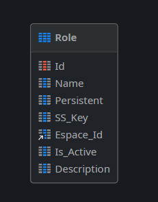 The Role entity holds all the roles created in the OutSystems platform and has a Foreign Key to identify the module to which the Role belongs.